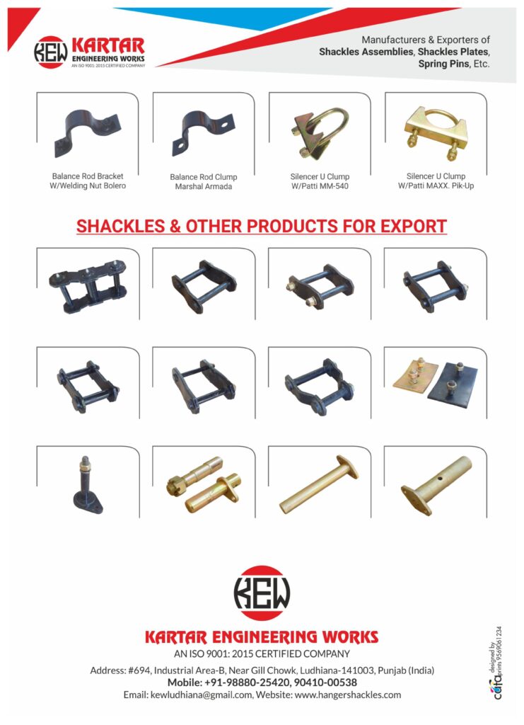 Kartar Engineering Work is a well-known Shackle Assemblie Manufacturers, Shackle Plates Manufacturers, Spring Pins Manufacturers, Tata Ace spring Pins Manufacturers, Auto Parts Spring Pins Manufacturers  , etc